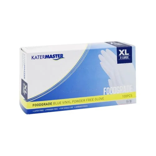 Katermaster Vinyl Glove Blue Extra Large is a powder-free and professional disposable glove solution for hospitals, cafés and restaurants. Offering the utmost comfort and quality, these gloves are friendly on the skin and functionally versatile.